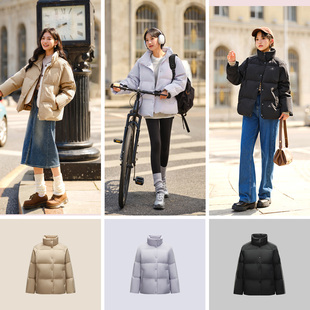 森马三防羽绒服女2024冬季 防水防污防油织带学院风立领面包服 新款