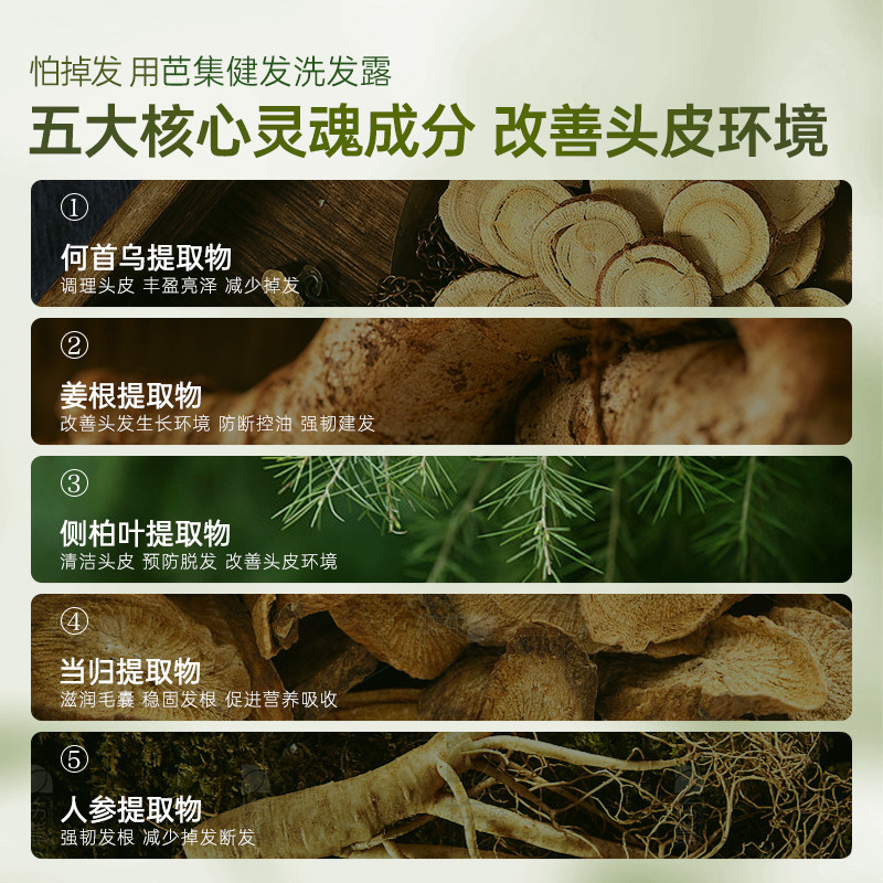 芭集侧柏叶洗发水何首乌生姜防断发控油蓬松天然草本洗发露洗头膏