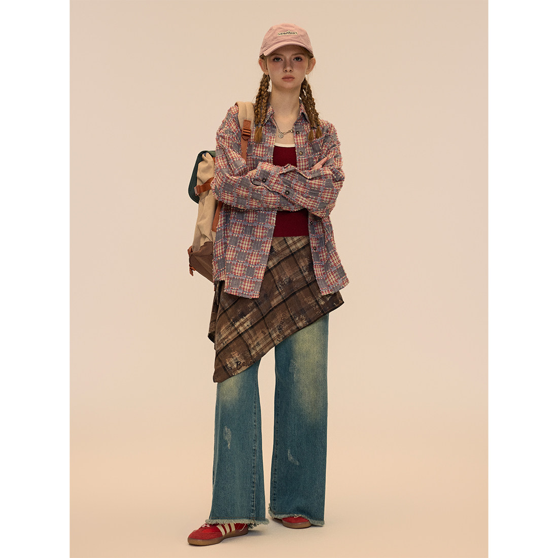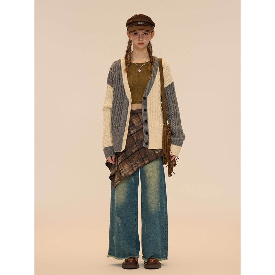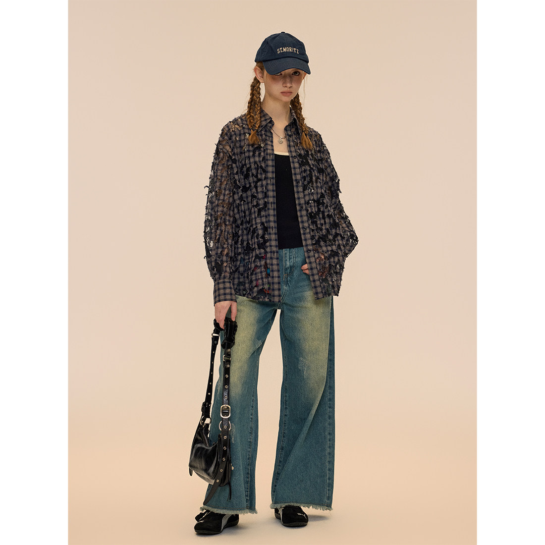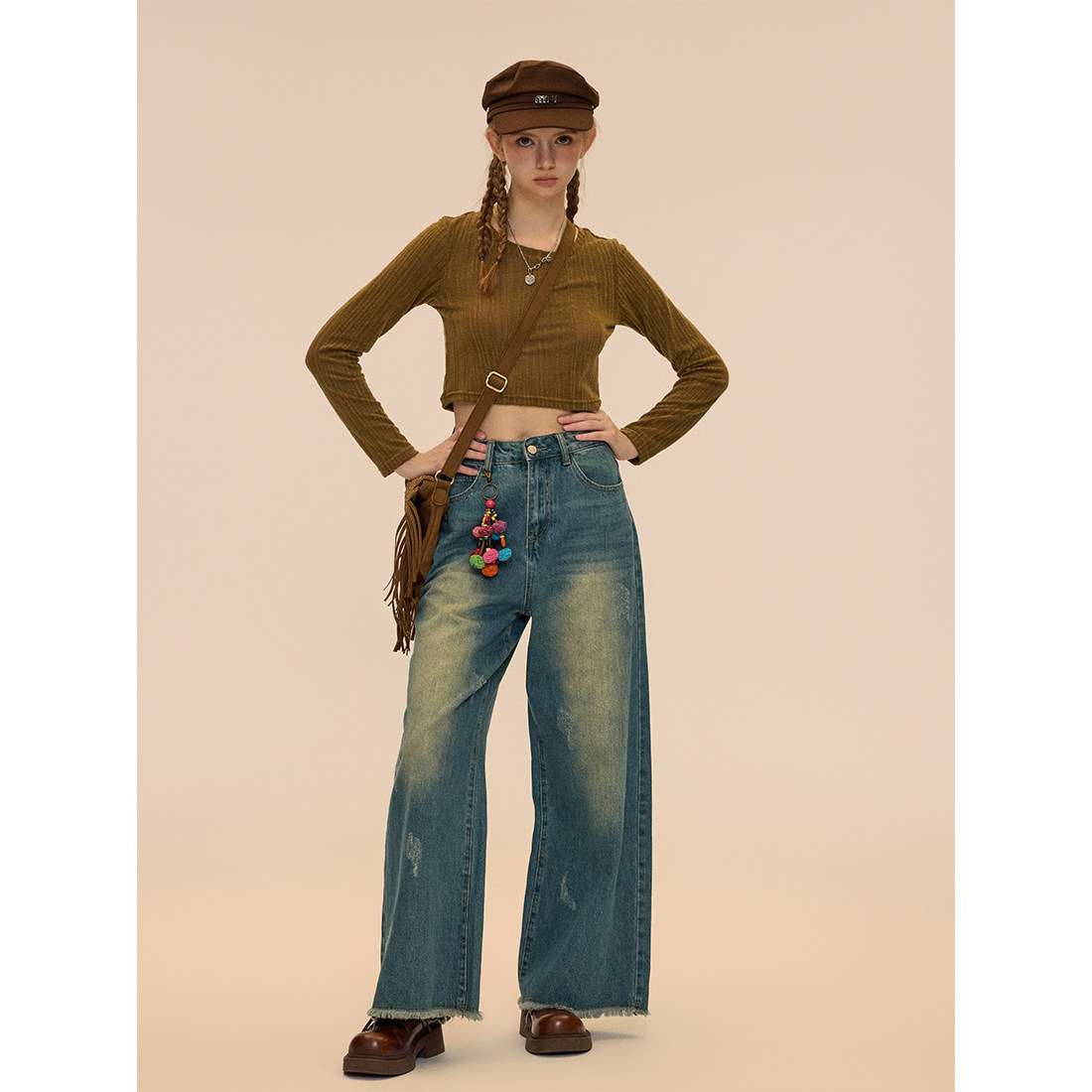 Vintage 垂感阔腿裤 Soul 女2024春秋款 复古水洗蓝色牛仔裤 RUGM
