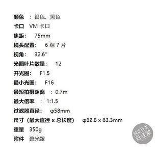 Vintage Line F1.5 徕卡M口长焦中远摄镜头 75mm 福伦达NOKTON