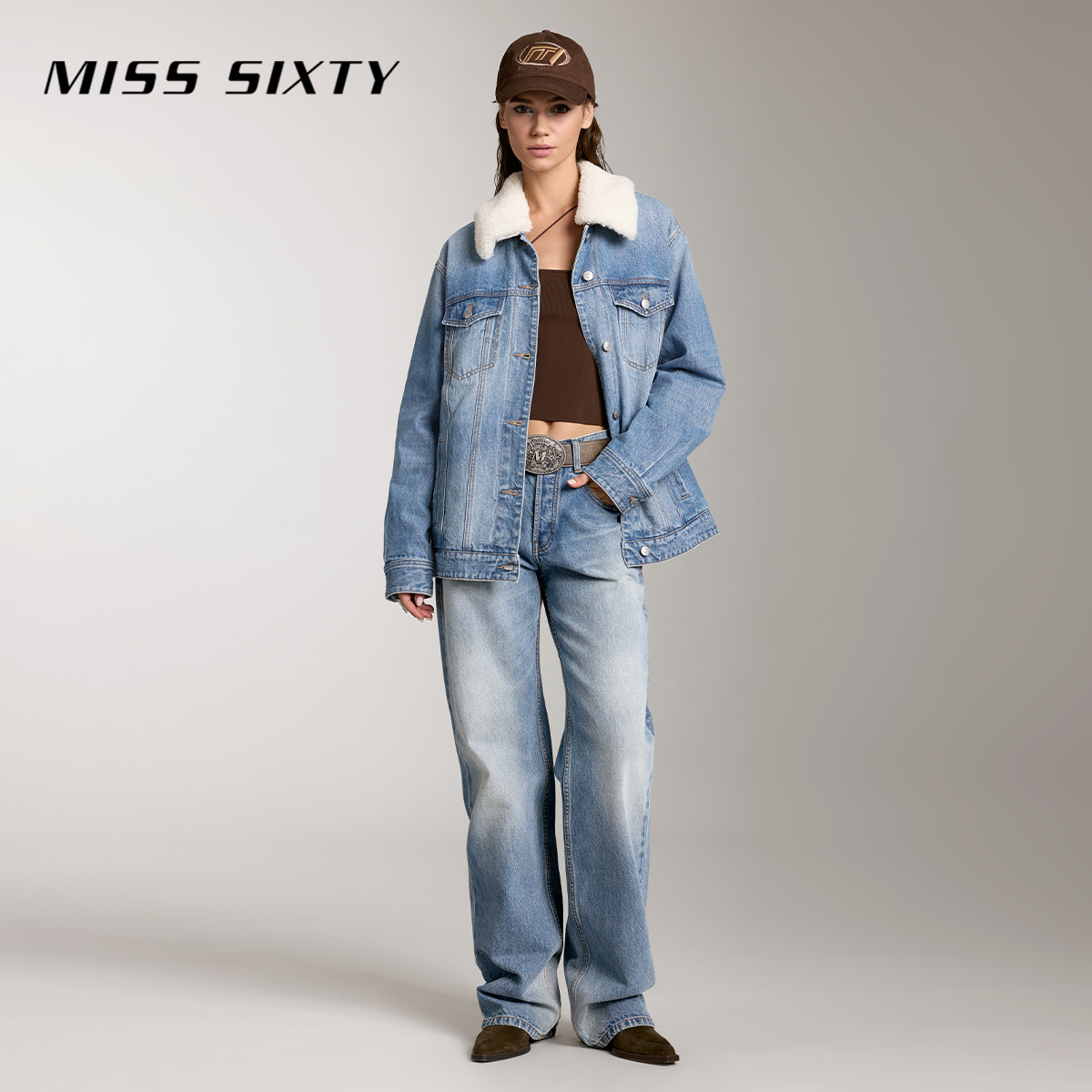 鹿与飞鸟巴恩风可拆卸毛领天丝棉垂感保暖厚绒长款 棉服6439
