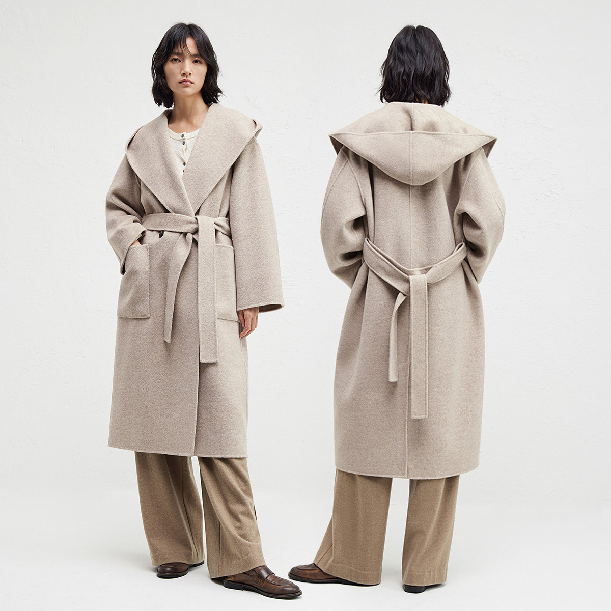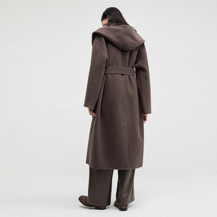 复古连帽长款 播商场同款 冬100%羊毛呢外套女BDR4AD3725 播奥莱