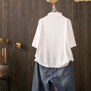 潮 打底衫 早秋大码 200斤半高领胖mm宽松堆堆领轻薄上衣T恤五分中袖