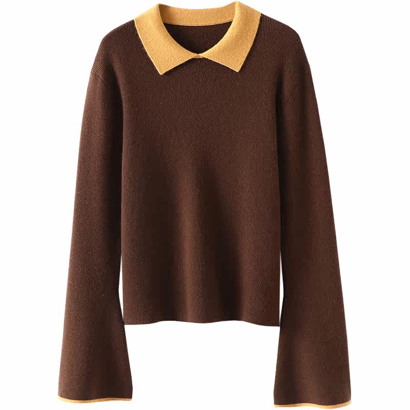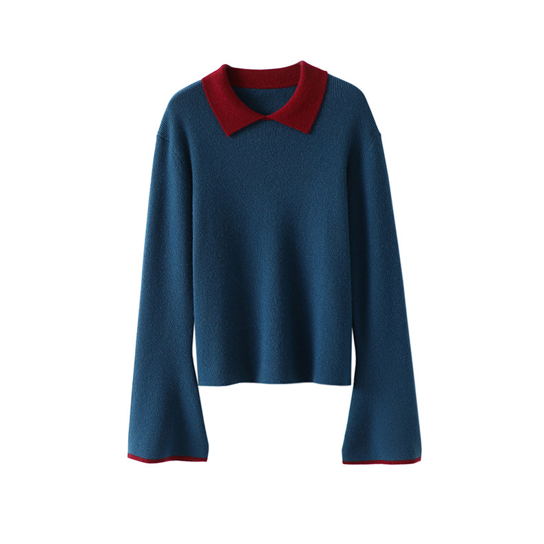 100纯羊绒女毛衣针织打底衫 翻领羊绒衫 秋冬 喇叭袖 启超心思精致