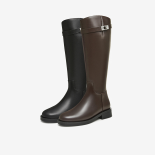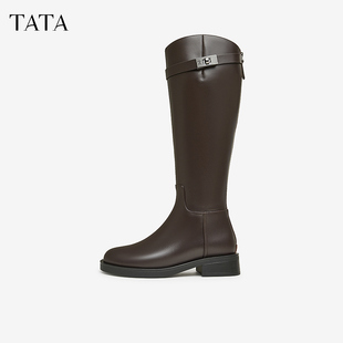 TATA他她时装 靴骑士靴女靴子大筒围真皮长筒靴加绒高靴冬7TG84DG4