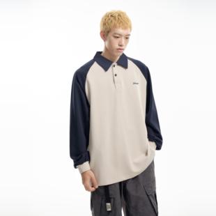 休闲宽松polo衫 春秋款 T恤翻领纯色上衣真口袋棉衣服男士 长袖 男装