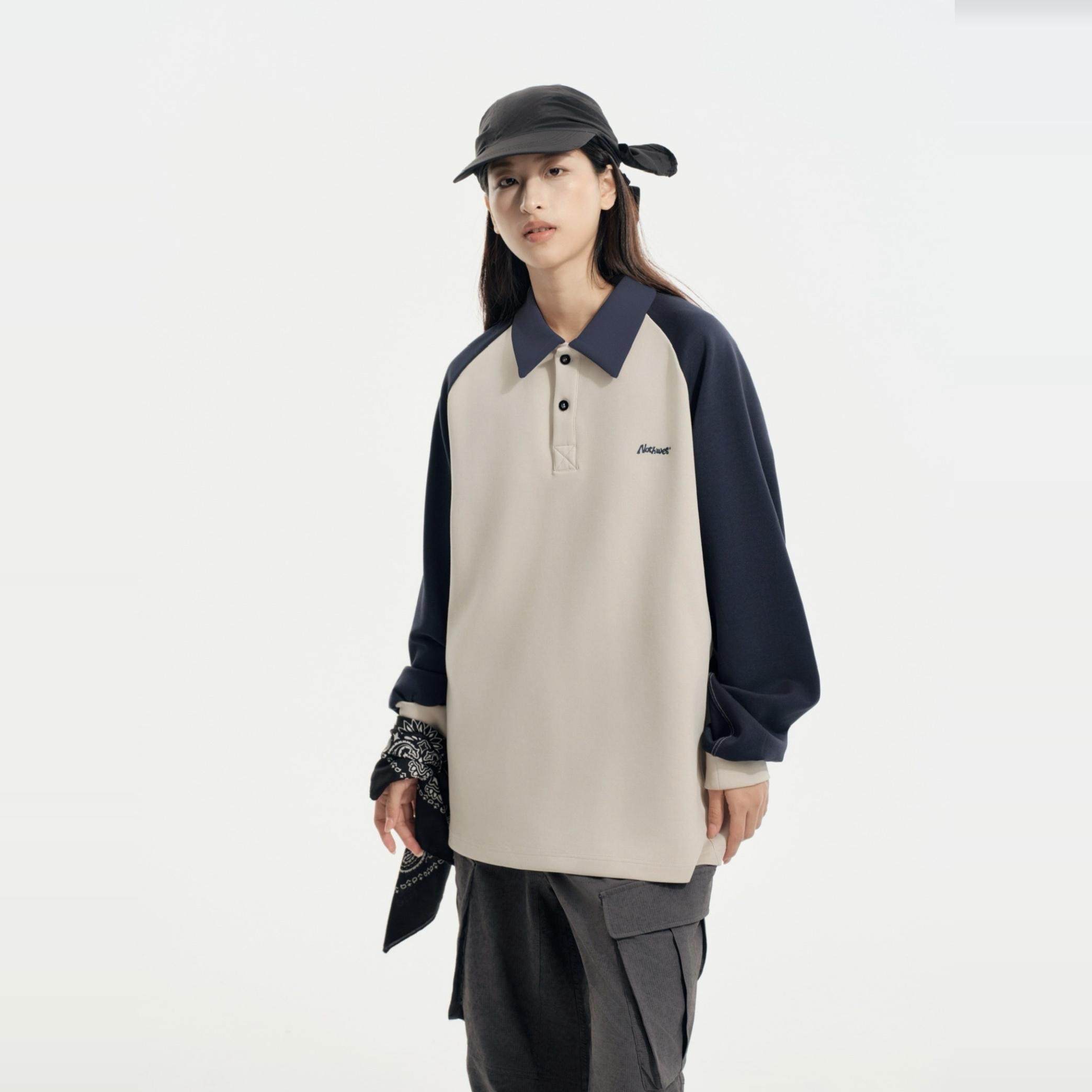 悟空有货复古格纹假两件拼接翻领卫衣男女秋季 宽松撞色休闲POLO衫