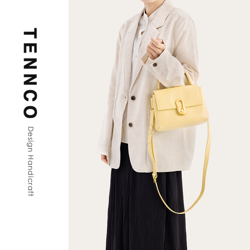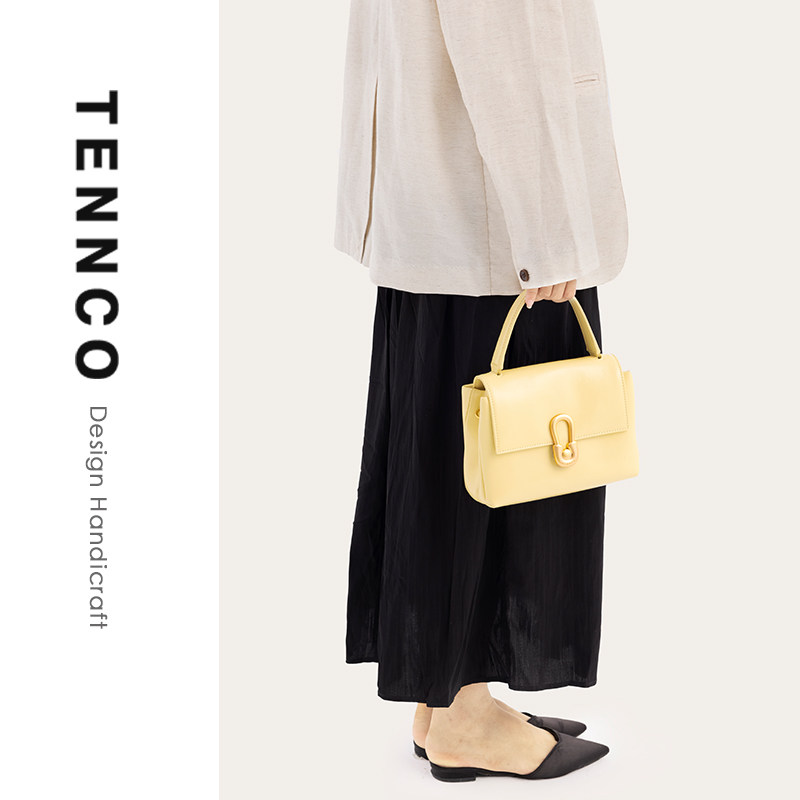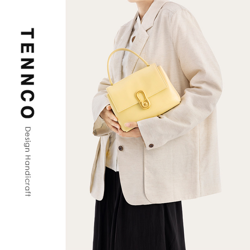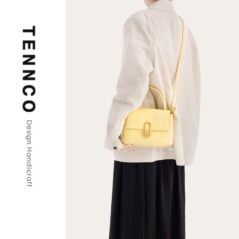 通勤单肩斜挎女包 头层真皮手提包秋新款 TENNCO原创 黑金小方包