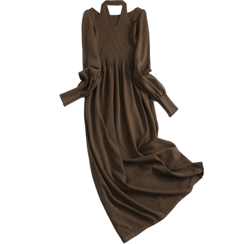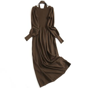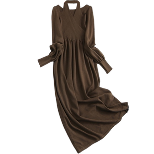 安妮不火 收腰长裙 软糯垂感蕾丝拼接V领针织连衣裙女秋冬微胖大码