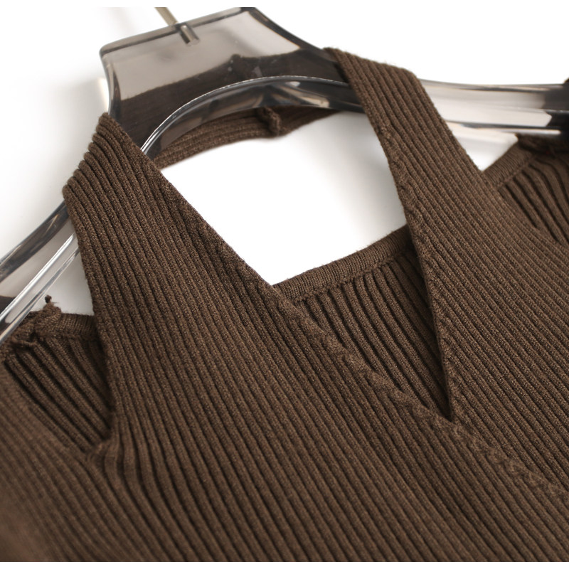 MULVAN 内搭收腰打底包臀短裙 性感v领针织连衣裙女秋冬修身