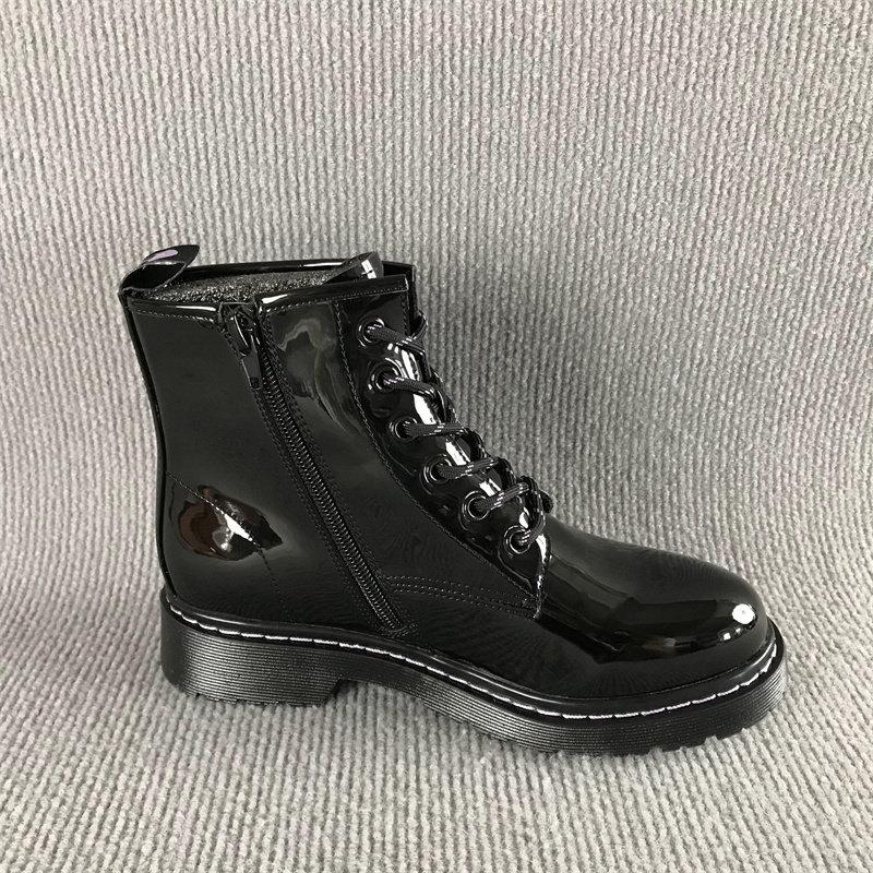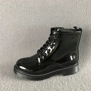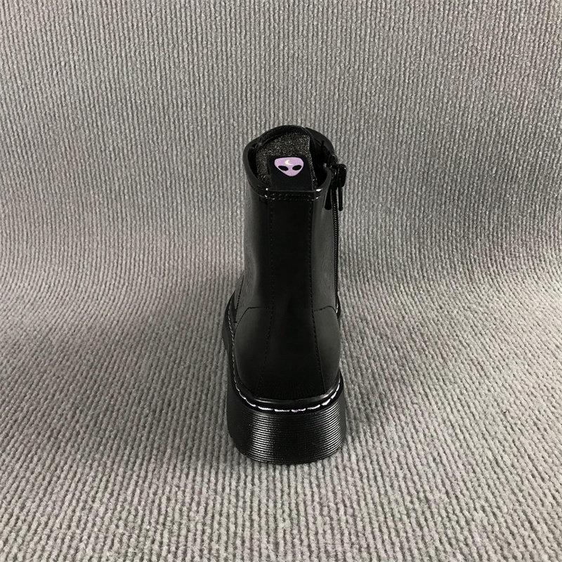 皮面短靴 黑色增高靴子女时尚 环球加绒厚底马丁靴女款 2025秋冬新款