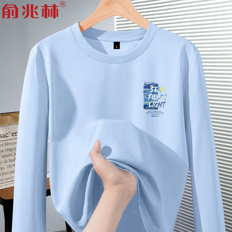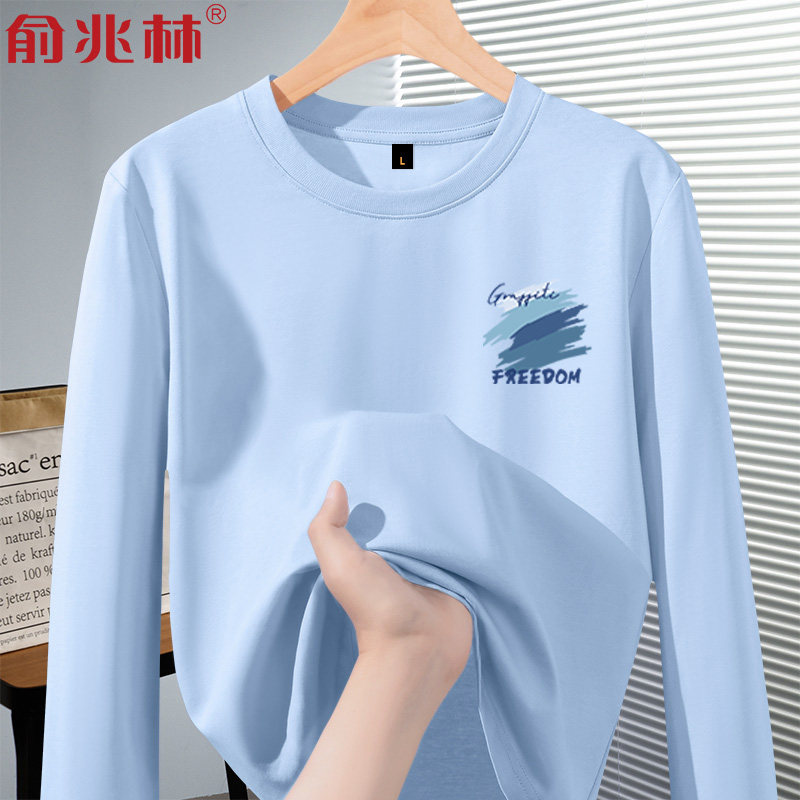 青少年春季 蓝色长袖 上衣2026新款 纯棉打底衫 内搭上衣 t恤男春秋款