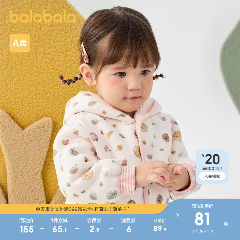 加绒两面穿 2025秋冬装 巴拉巴拉童装 儿童外套男童上衣女童衣服新款