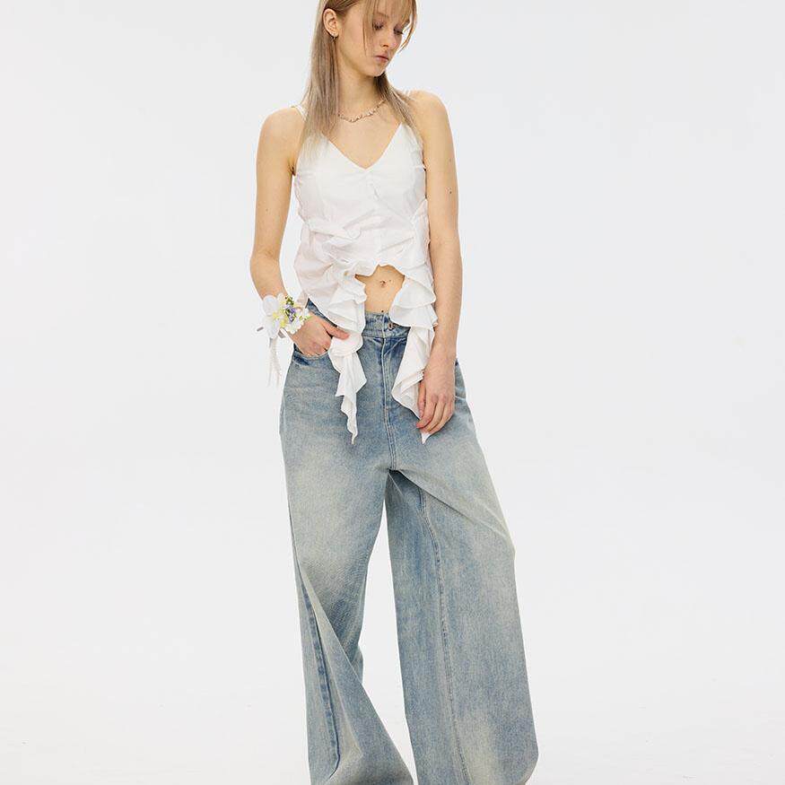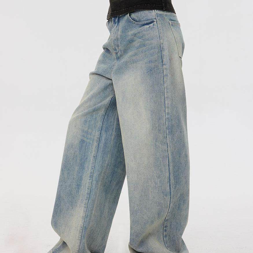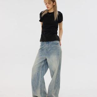 F1protagonist冰蓝复古牛仔女宽松垂感显瘦阔腿裤 酸奶棣推荐