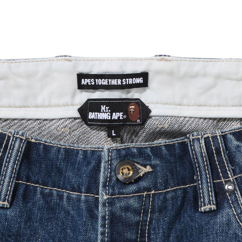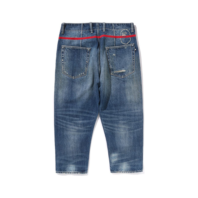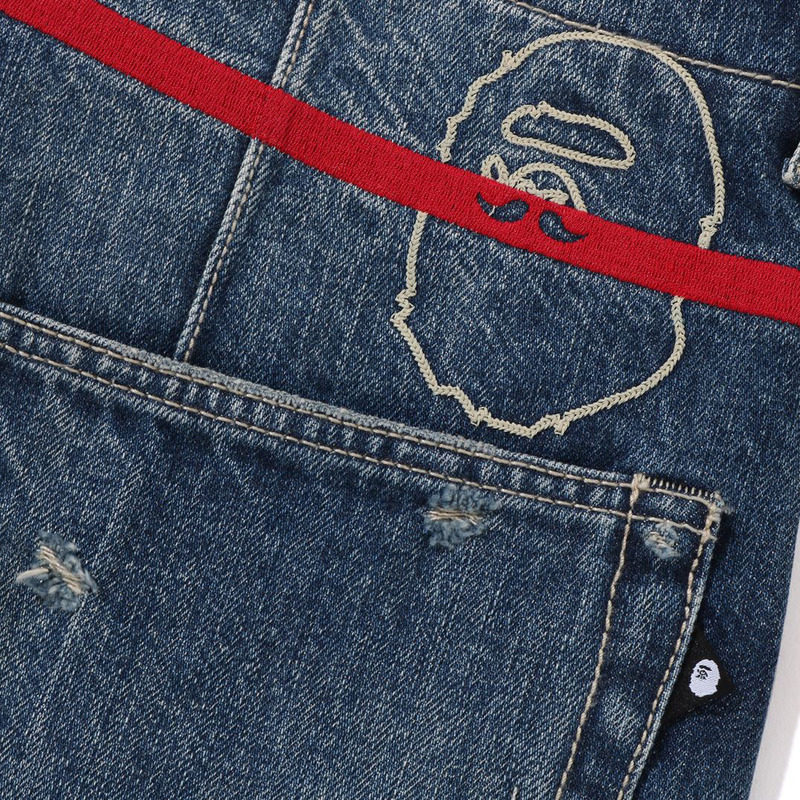 150301N 秋冬猿人胡子刺绣做旧晕染感牛仔裤 MR.BATHING APE男装