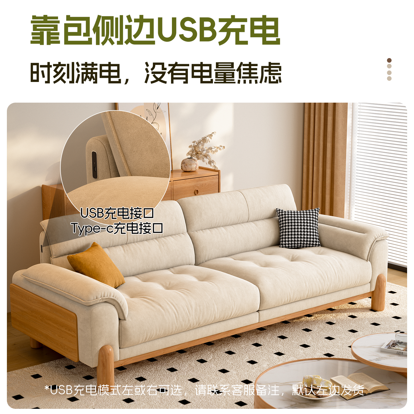 现代简约佛山新款 原木风布艺沙发北欧奶油客厅白蜡木实木沙发 日式