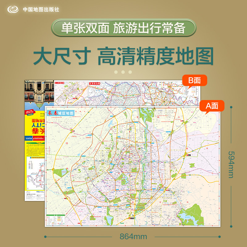 北斗地图精品打造 交通旅游住宿生活 大比例尺城区图 2025年新版 594mm 长春市旅游交通地图 展开864 CITY城市地图系列 长春地图