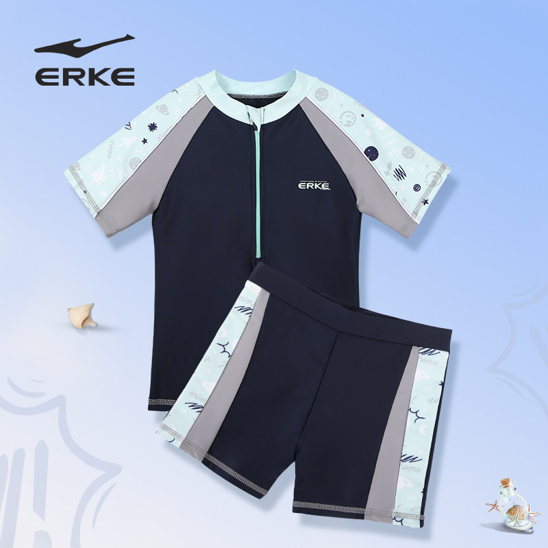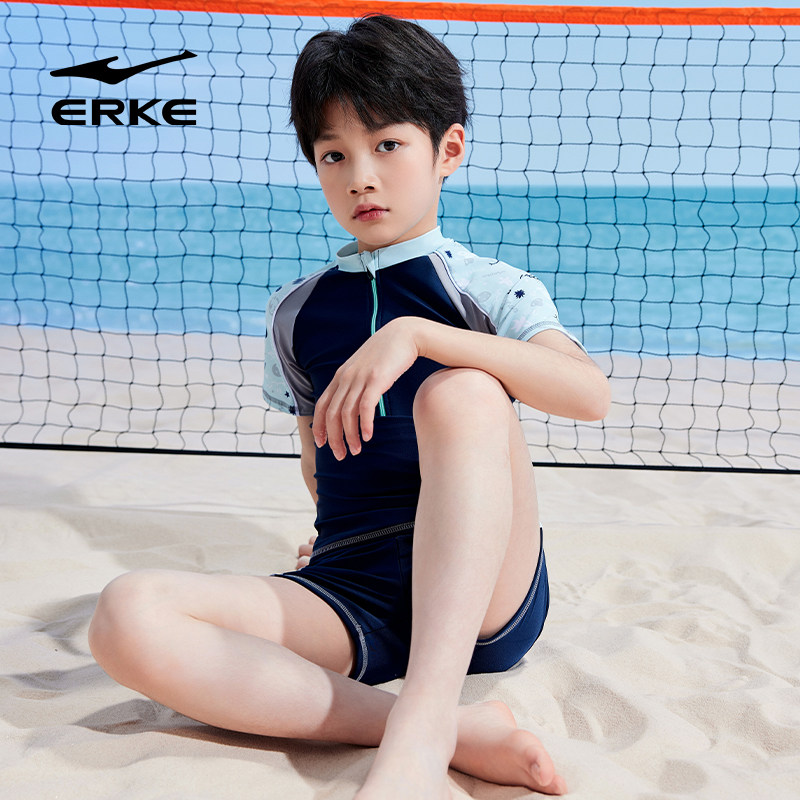 鸿星尔克儿童泳衣新款 备 男童中大小孩分体专业运动防晒宝宝游泳装