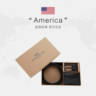 蔻驰男士 COACH 腰带卡包PVC配皮皮带零钱包送男友礼盒装 自营