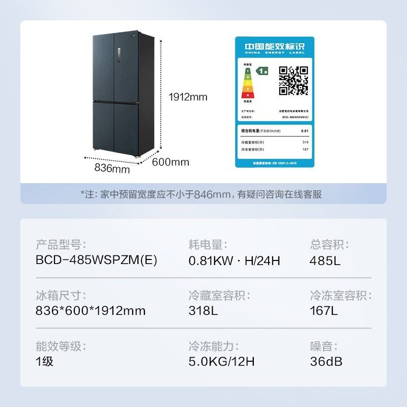 美 423风冷无霜一级变频M60超薄嵌入式 485 450 电冰箱 483 Midea