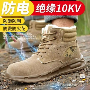 高帮绝缘焊工作工地棉鞋 新款 防砸防刺穿塑钢头冬季 男士 羊毛劳保鞋