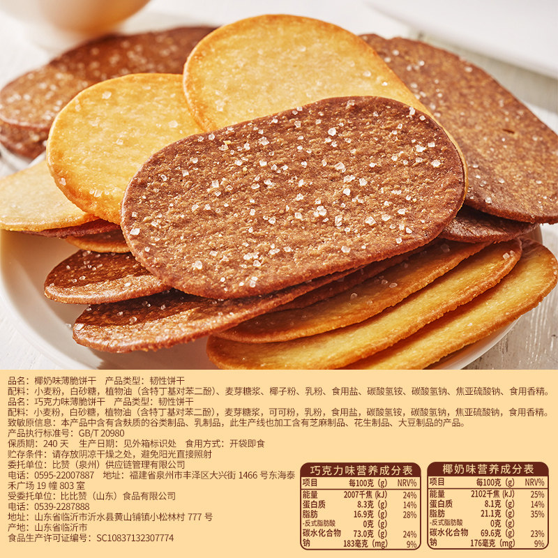 比比赞椰奶薄脆饼干单独包装 早餐巧克力薄饼干网红小零食解馋儿童