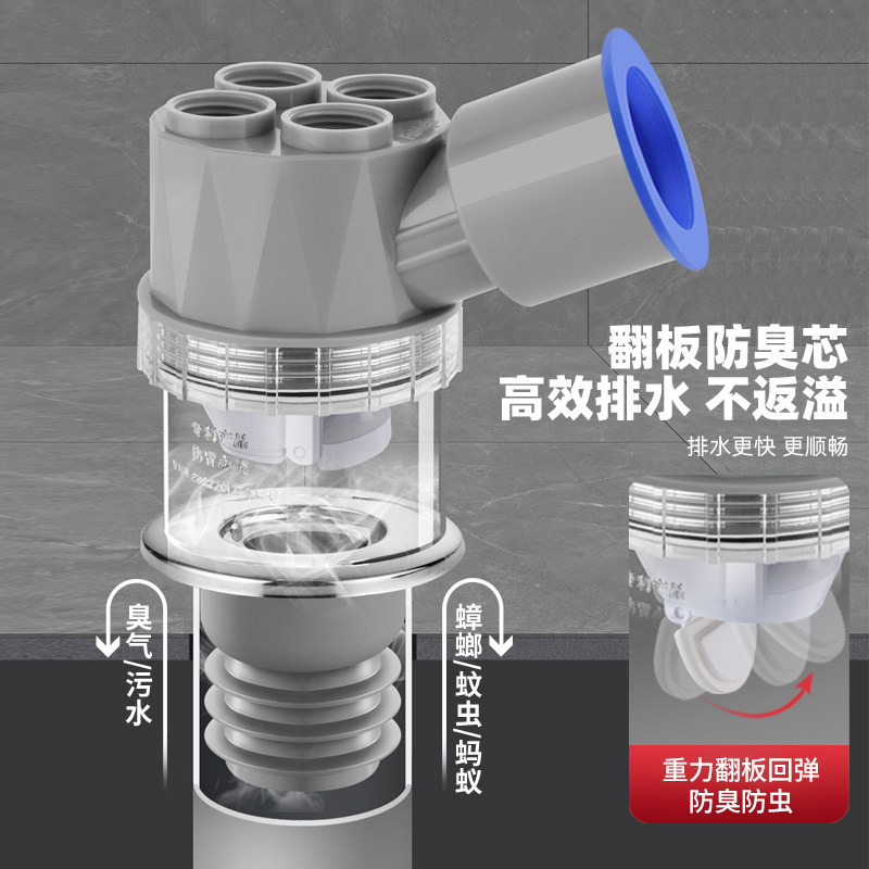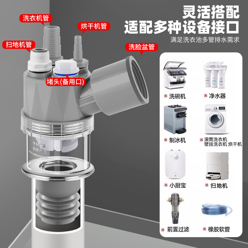 下水管三头通洗衣机地漏接头烘干机空调排水管道三通二合一分水器