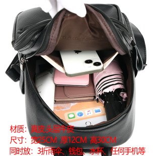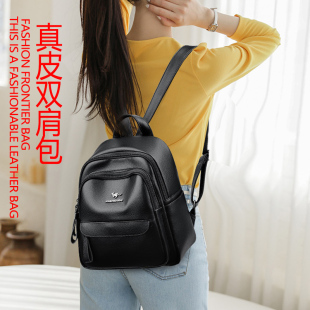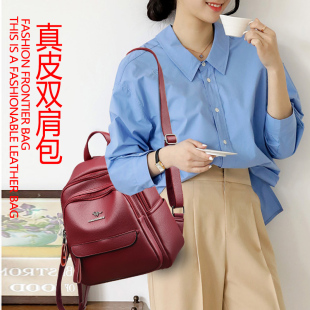 袋鼠真皮大容量双肩包女士2026新款 休闲旅行妈妈背包女包软牛皮包