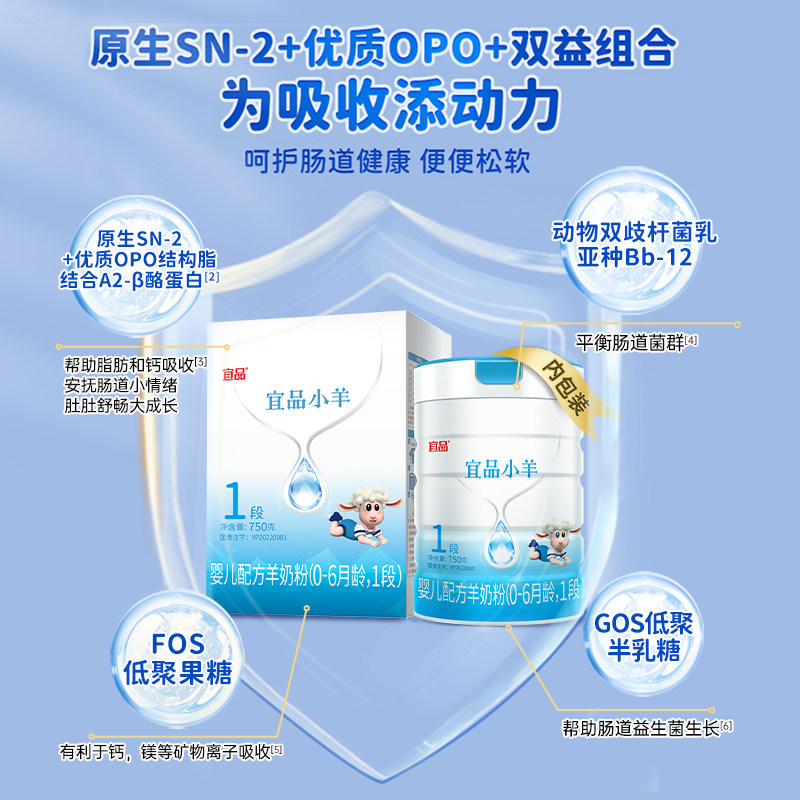 蓓康僖宜品小羊婴幼儿配方羊奶粉1段750g 6个月新生宝宝官方 6罐0