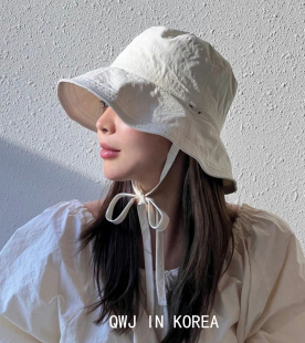 韩国进口ins博主同款 度假带防风绳渔夫帽轻便可折叠遮阳帽防晒帽
