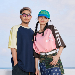 男装 夏装 美式 短袖 加肥加大雅痞男 复古t恤条纹撞色男式 NMAX大码