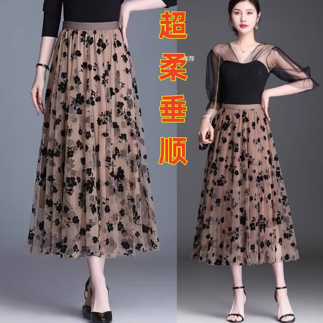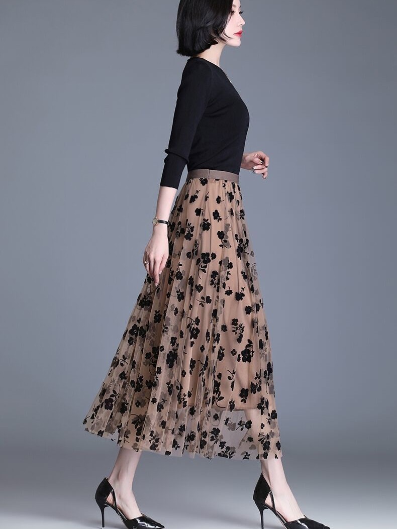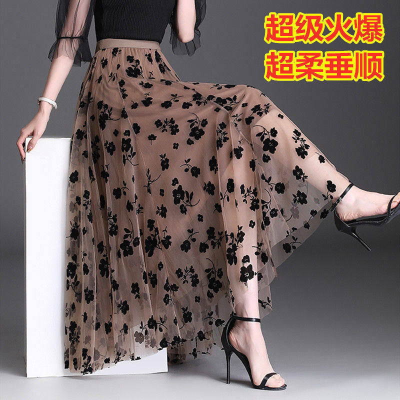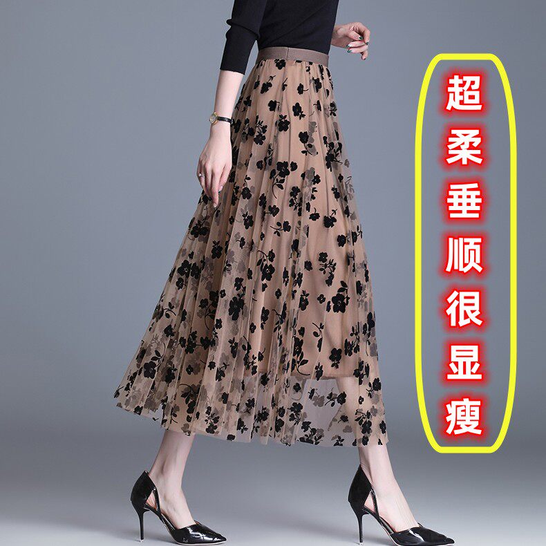 高端法式 中长裙蓬蓬裙植绒纱裙子 复古网纱半身裙女2026春夏新款