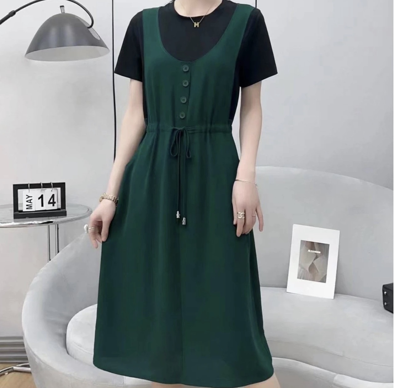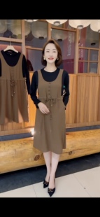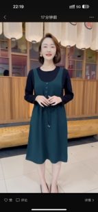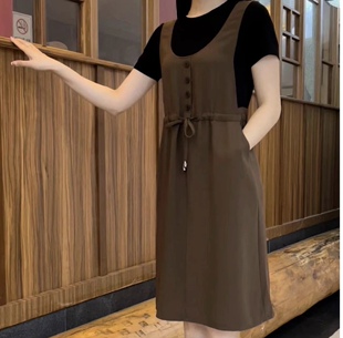 夏季 气质连衣裙收腰显瘦百搭假两件中长裙单排扣气质高腰裙 新款