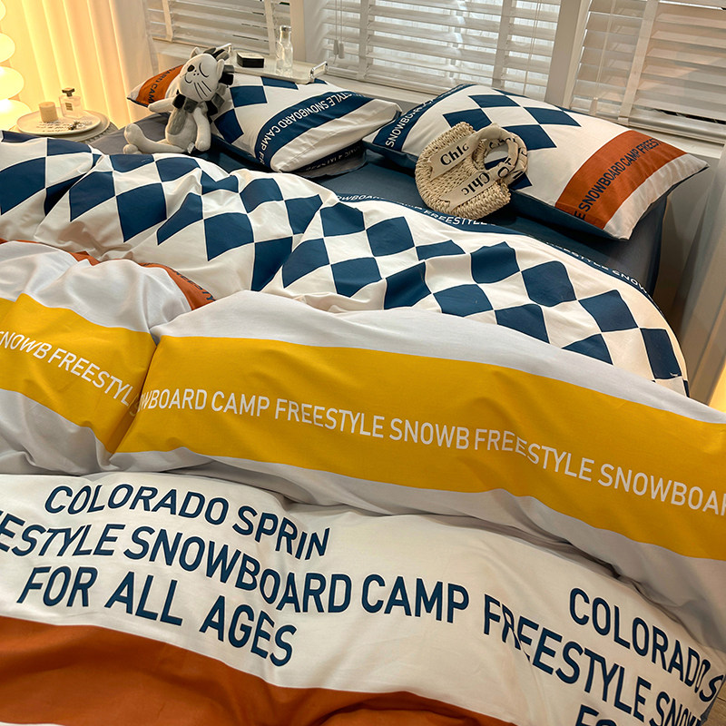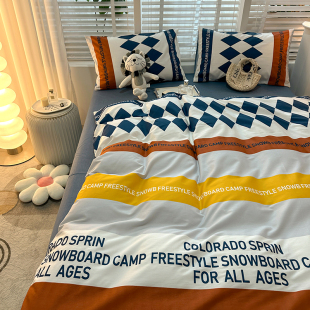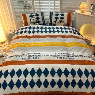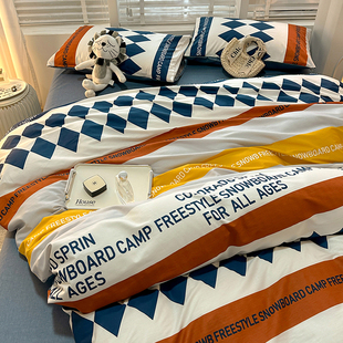 ins风纯棉四件套100全棉北欧简约儿童床单被套床上用品三件套男孩