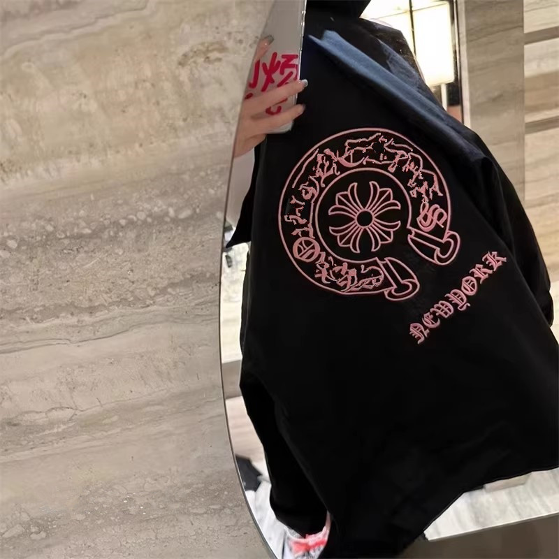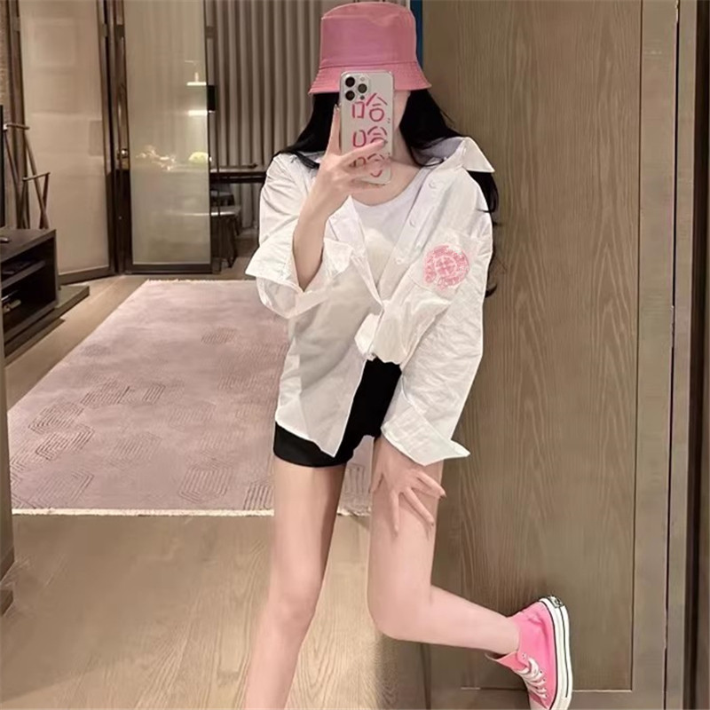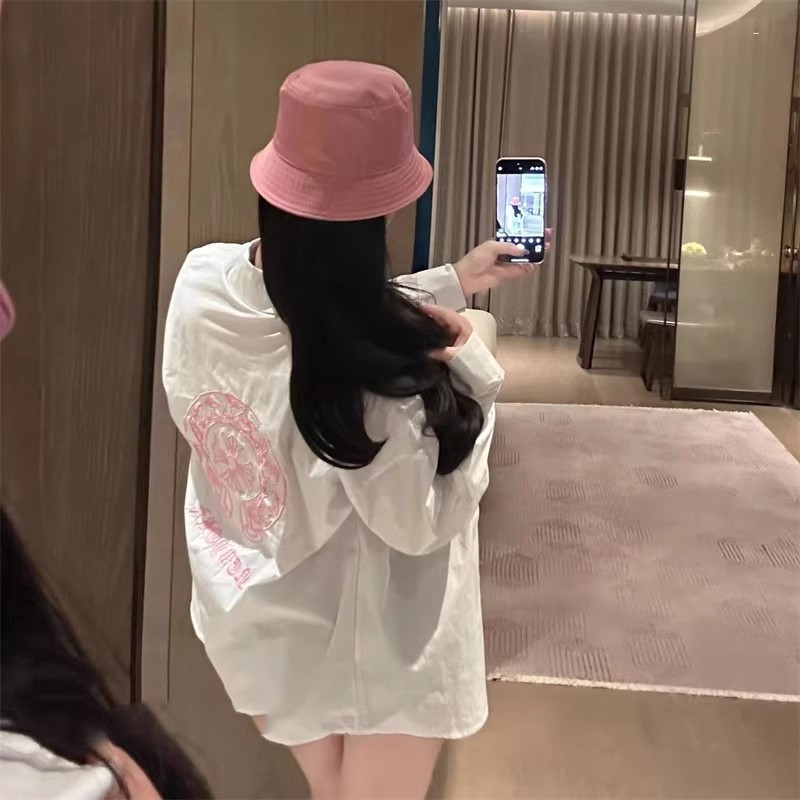 女ins超火设计感宽松慵懒情侣上衣 衬衫 春夏新款 马蹄梵文刺绣长袖