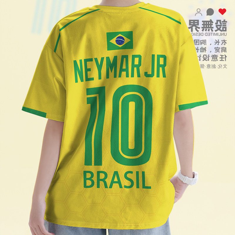 世界杯巴西足球球星内马尔国家队球迷速干T恤男女上衣0015设 无界