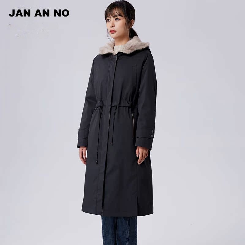 海宁皮草整貂皮水貂毛外套女长款 小母貂大衣冬 过膝皮毛一体年轻款