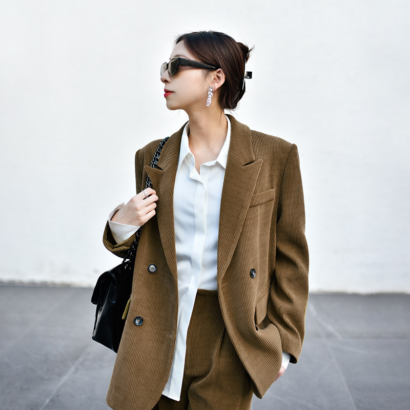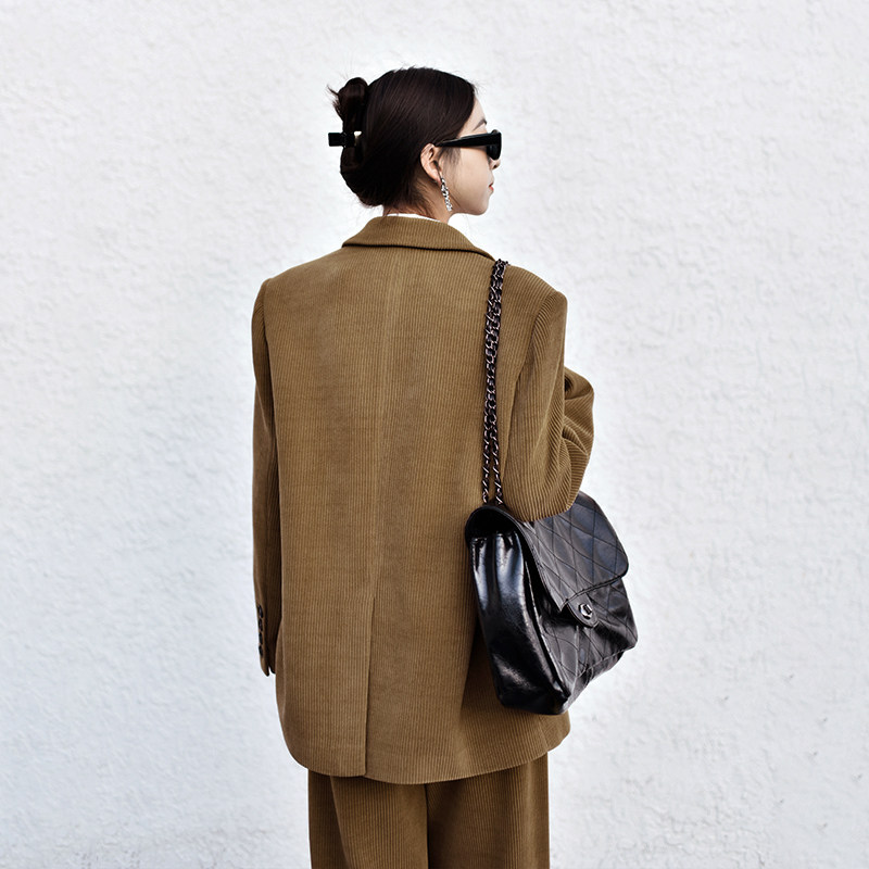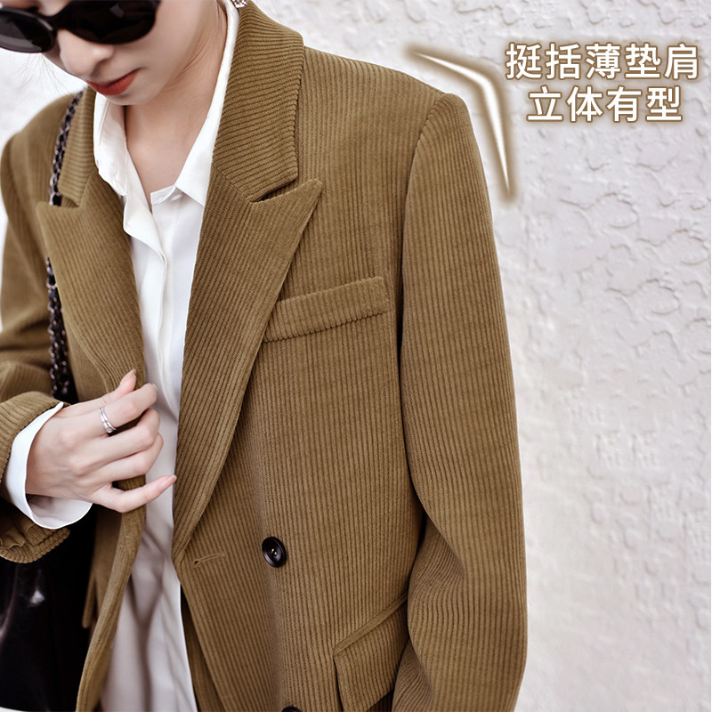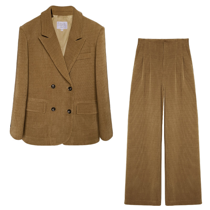 复古高级感灯芯绒宽松休闲垂感裤 女2024秋季 子西服两件套 套装 西装