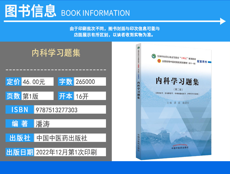 全国中医药行业高等教育十四五规划教材配套用书 中国中医药出版 第二版 潘涛等 社9787513277303 2第十一版 内科学习题集
