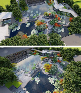 素江南传统院子庭院su模型cad 景观小品水体元 中式 古典苏州园林