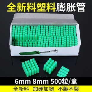 全新料塑料膨胀管胶粒胶塞6mm8mm绿色盒装 胀塞螺丝墙塞6厘8厘螺钉