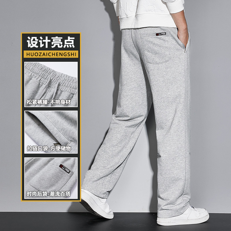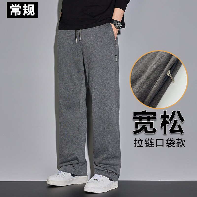 百搭裤 直筒宽松休闲裤 子拉锁运动裤 春秋男款 男士 青少年长裤 卫裤