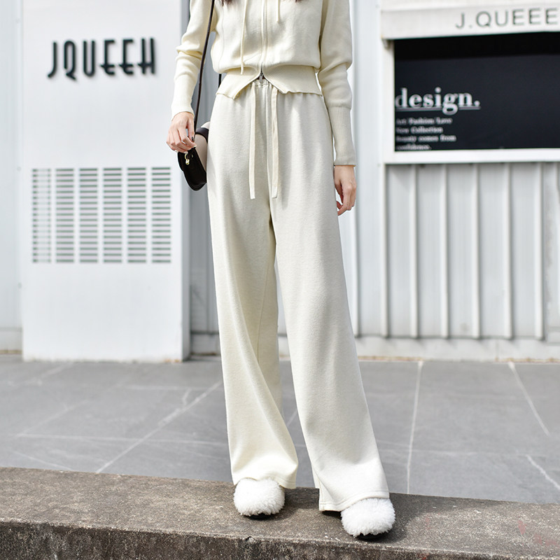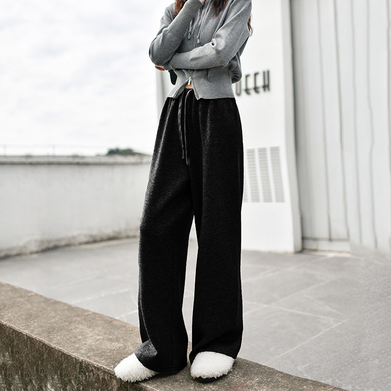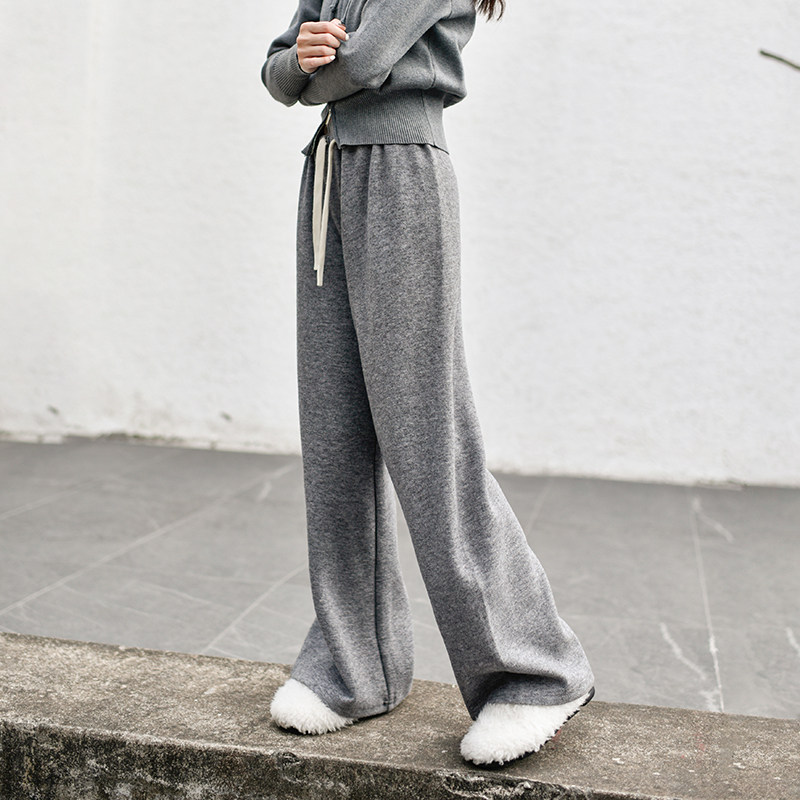 宽松显瘦高腰垂坠感拖地抽绳休闲糯米裤 新款 女加厚秋季 针织阔腿裤