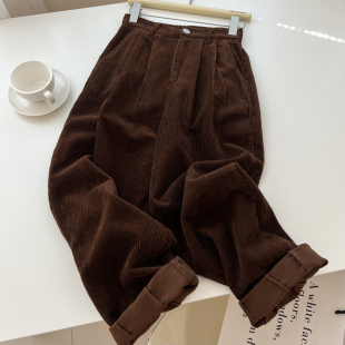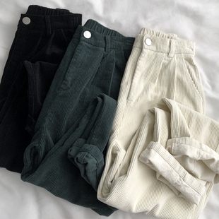 女秋冬韩版 显瘦百搭休闲长裤 新款 加厚宽松哈伦裤 马裤 灯芯绒阔腿裤