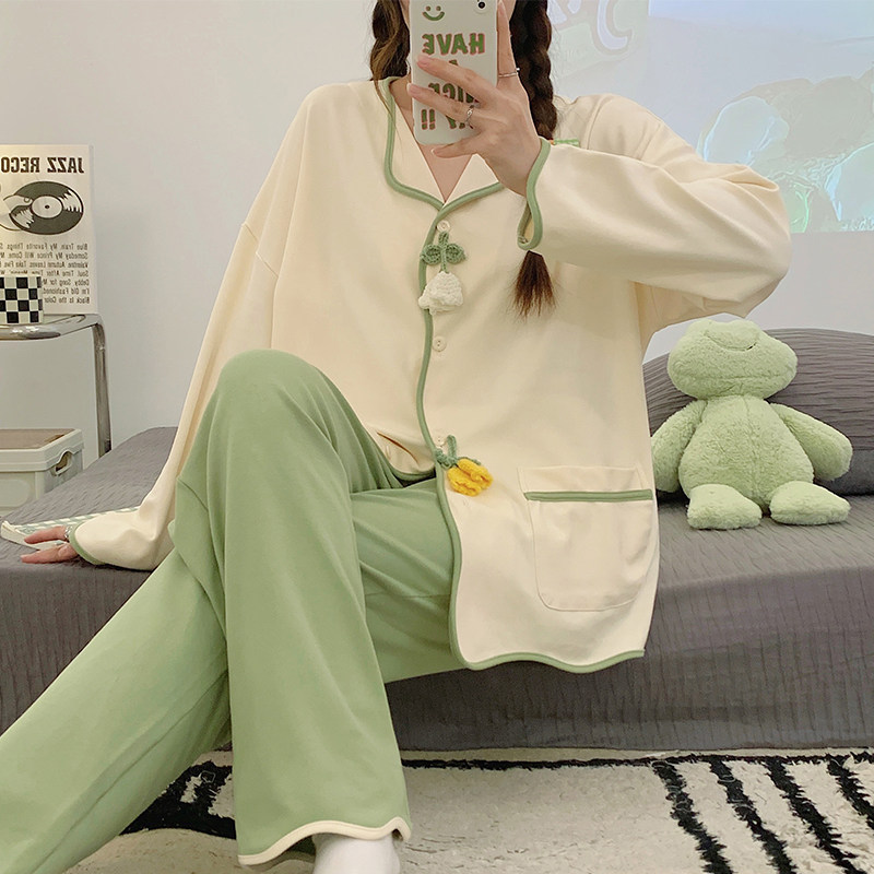 冬季 家居服女套装 网红长袖 开衫 宽松可爱女士夏天薄款 睡衣女春秋款