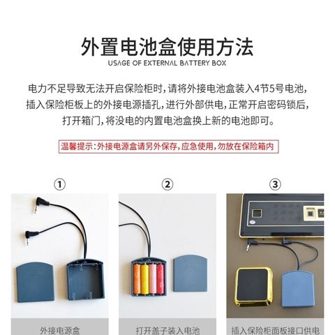 保险箱柜外接应急备用电源内置电池盒充电器6V品牌通用2.5和3.5