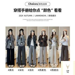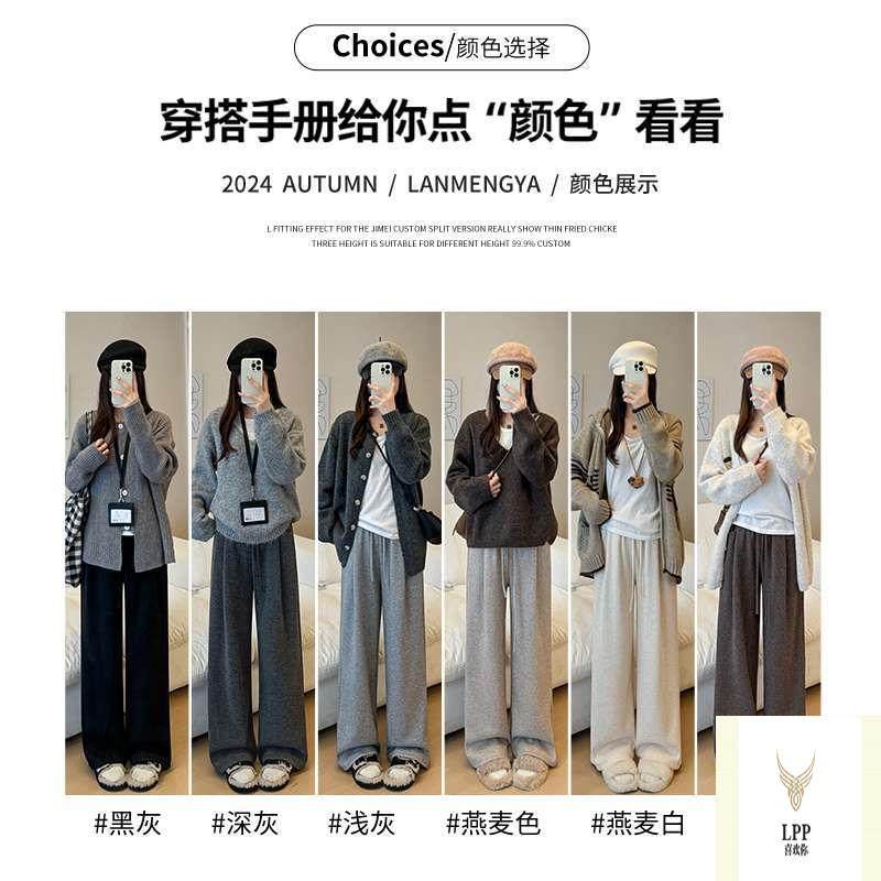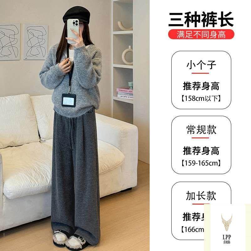 外穿休闲阔腿裤 清仓灰色羊羔绒糯米裤 女秋冬加绒加厚保暖显瘦棉裤