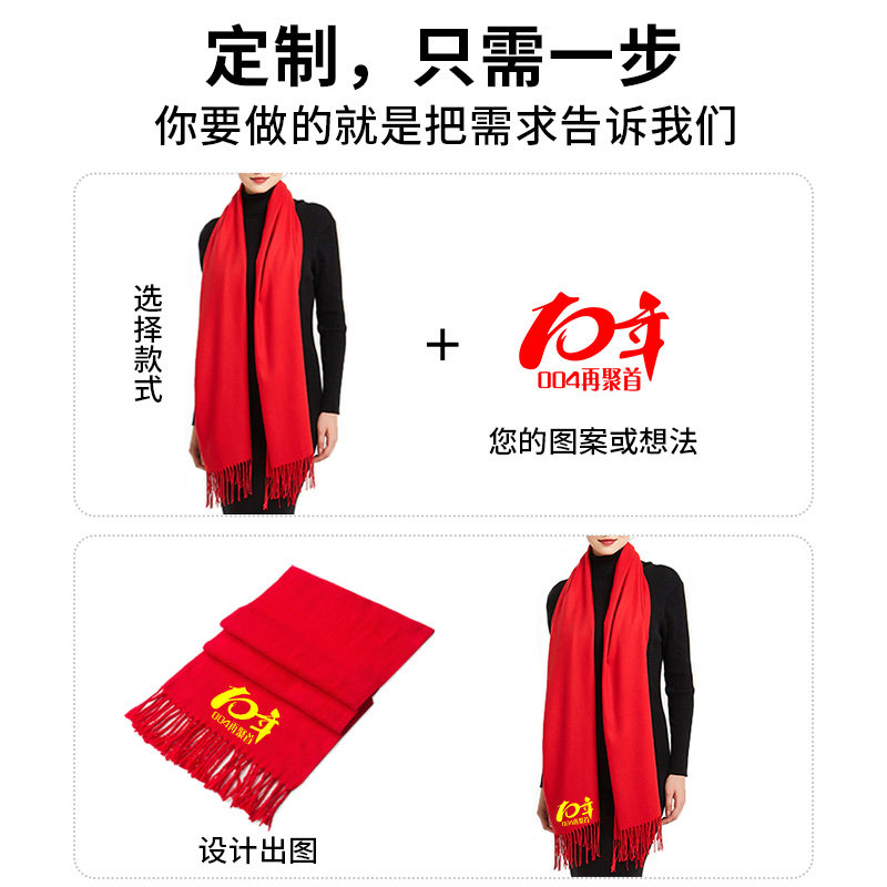 中国红大红色围巾定制logo公司年会同学聚会活动围脖定做刺绣印字