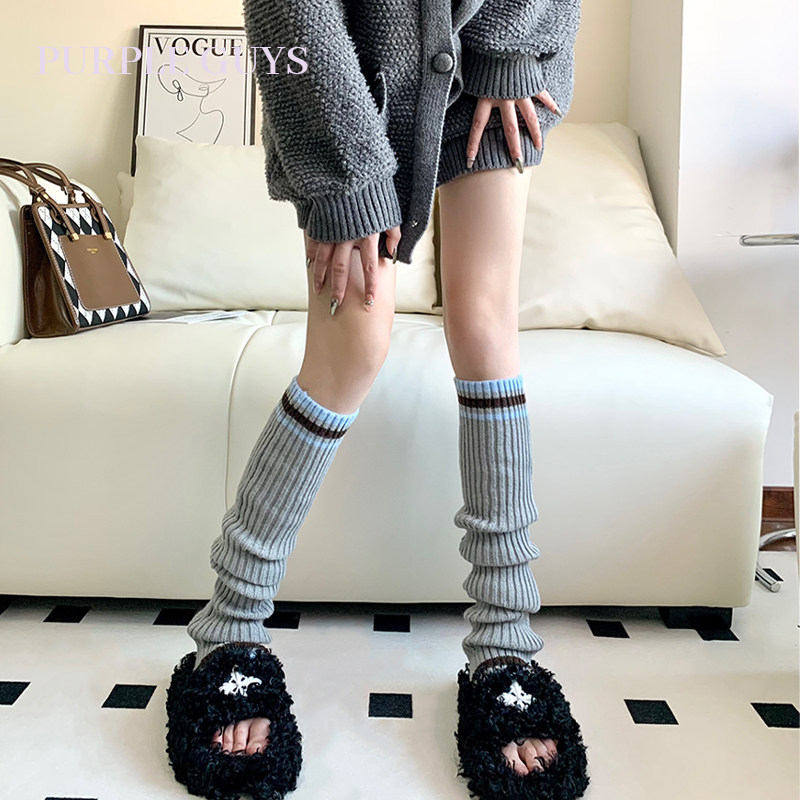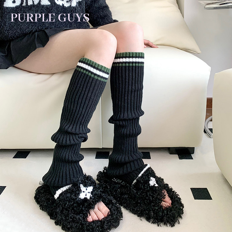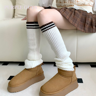 purple guys条纹拼接撞色袜套女针织保暖学院风y2k辣妹腿套堆堆袜