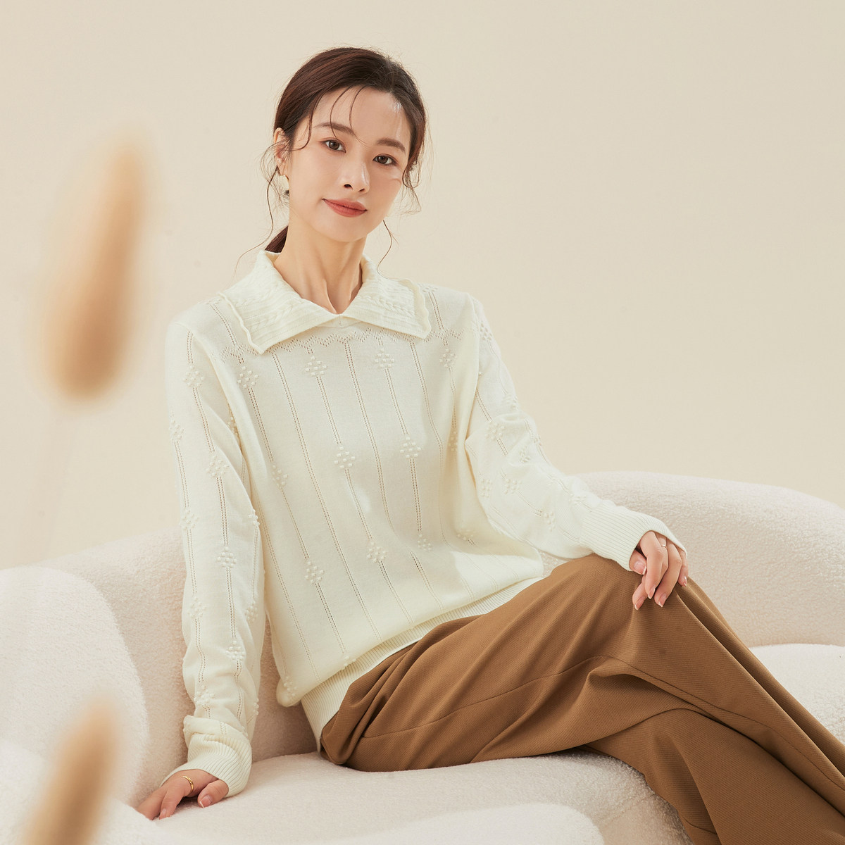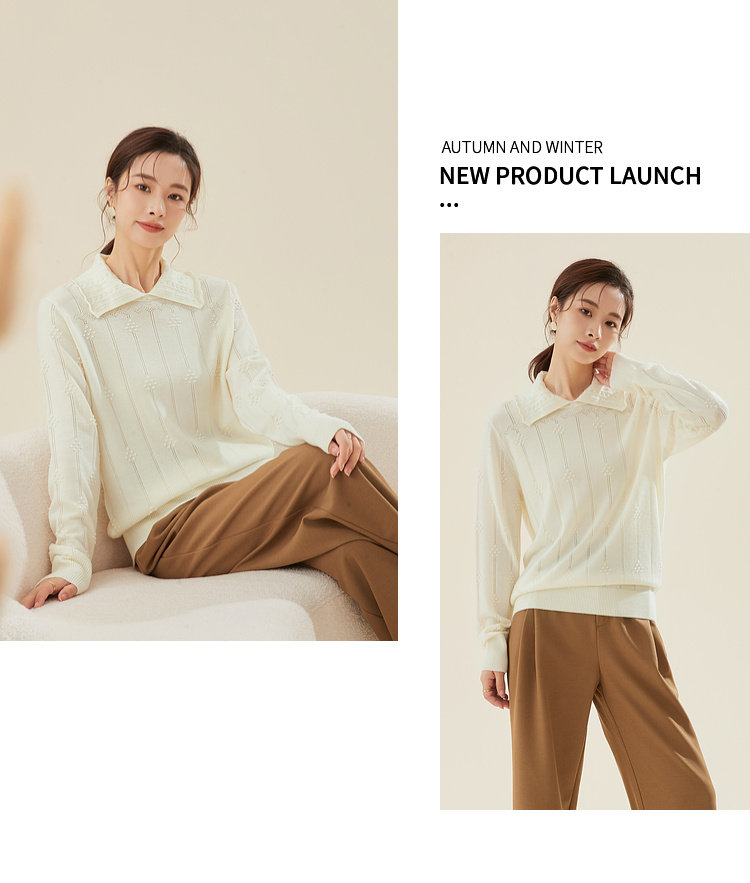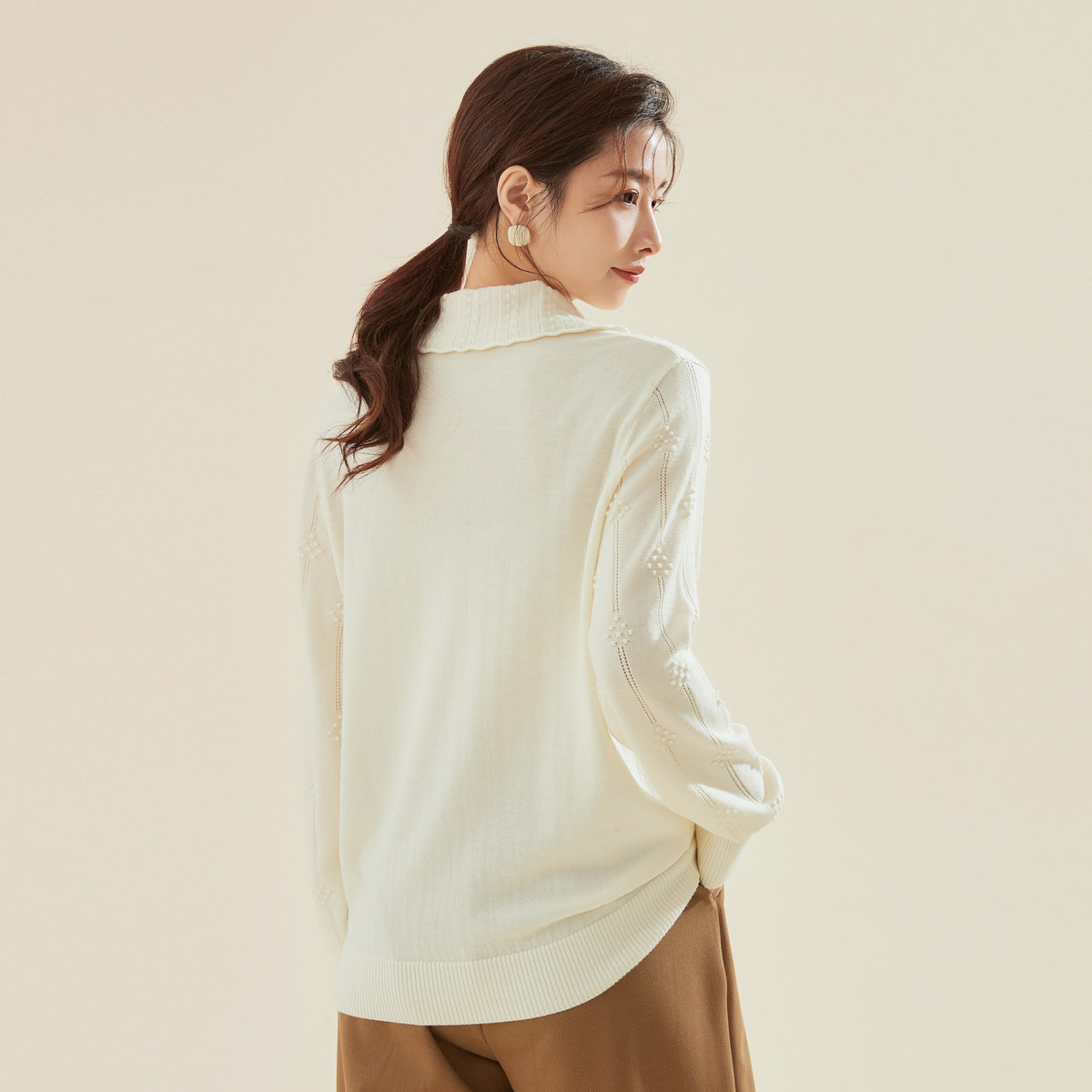提花休闲时尚 SPRING 半高领女套衫 春竹羊毛衫 保暖羊毛上衣 BAMBOO